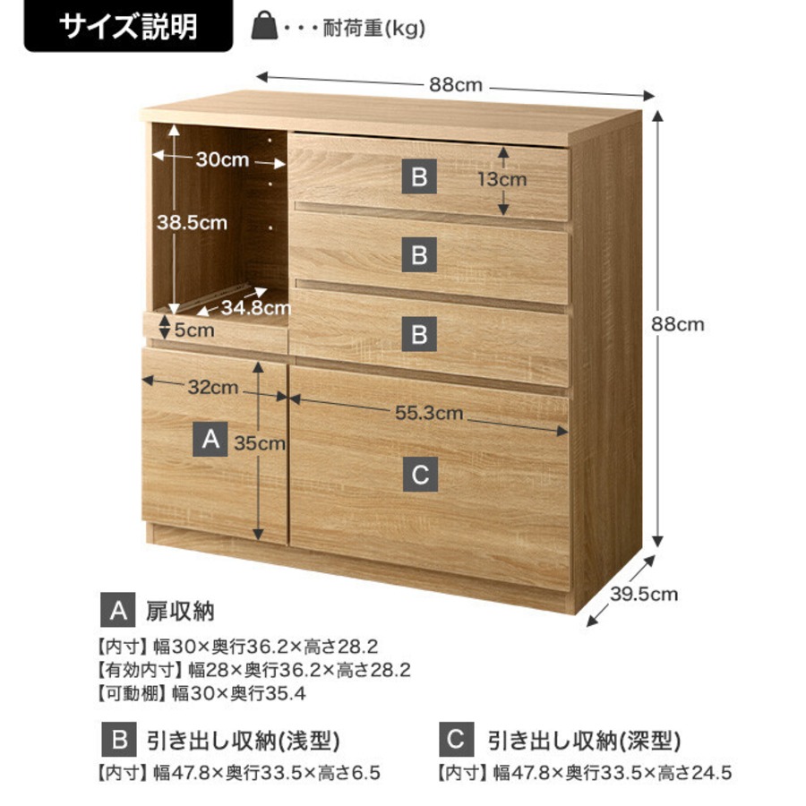 浅型引き出し:各約3kg、深型引き出し:約5kg