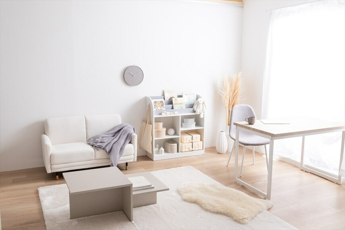 お子様のおもちゃや絵本をまとめてスッキリ収納可能な