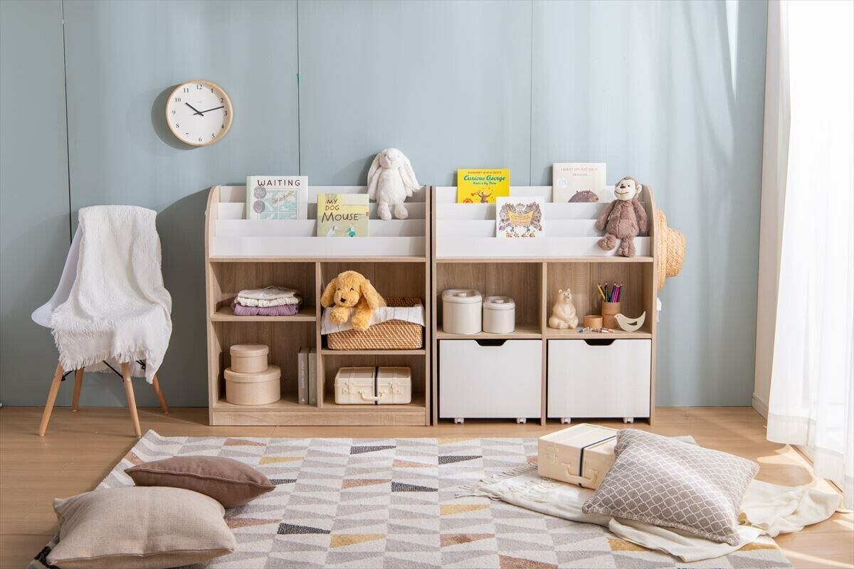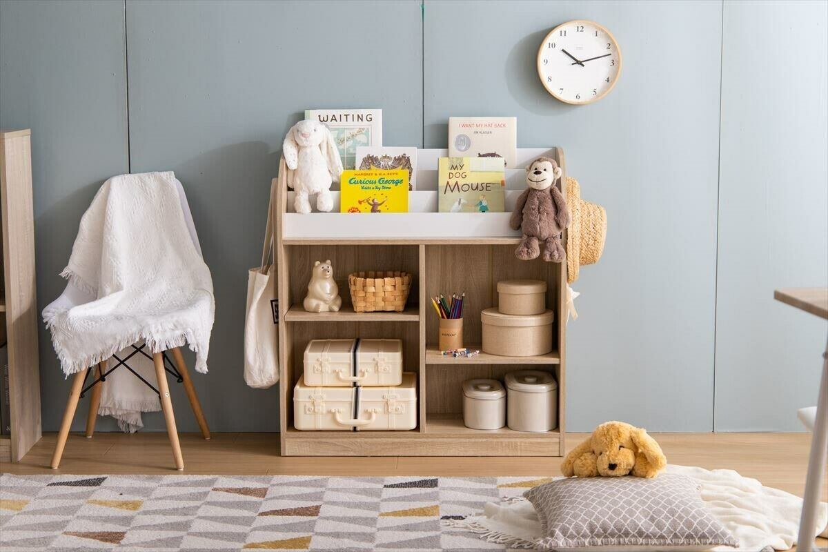 おもちゃも絵本もまとめて綺麗に収納可能で、お子様がお部屋をお片付けする習慣にも繋がります。