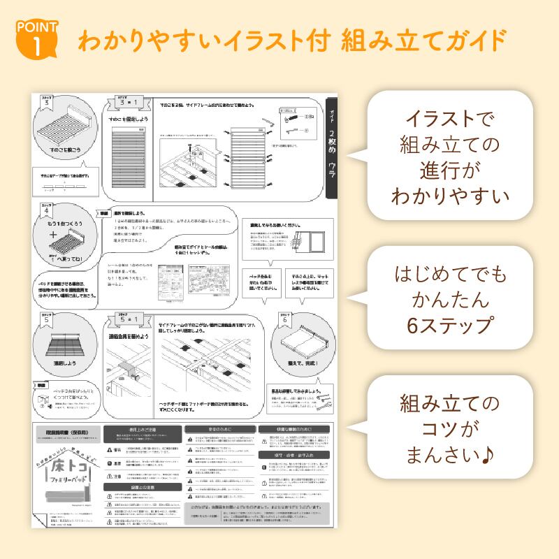 間隔を狭くした設計だから、大家族も元気なお子さんの眠りもぜんぶベッドが支えます。