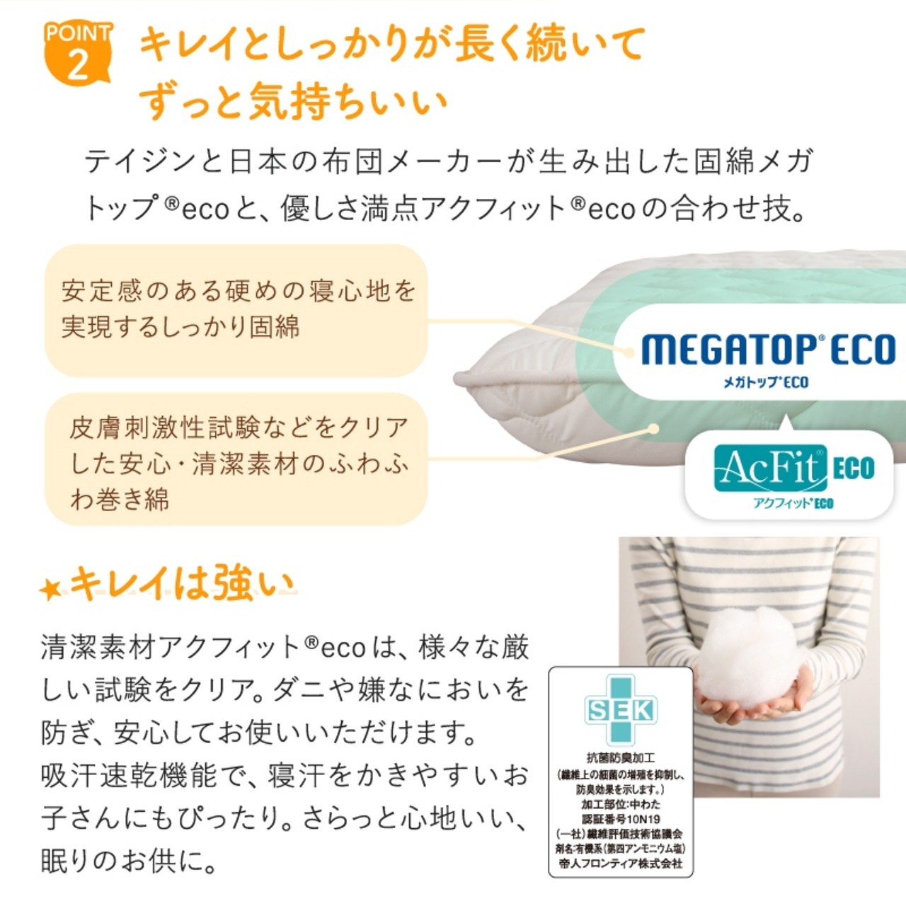ダニやカビの発生をおさえ、ママのお手入れをラクにしたい、寝汗をかきやすいお子さんにも快適に寝てほしいという思いも込めてフラット式×すのこ仕様のピタッと設計を採用しています。
