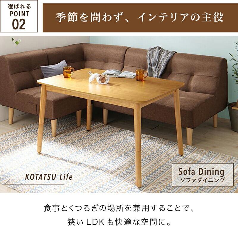 4段階高さ調節こたつテーブルコルテ2: 長方形(75×105cm)