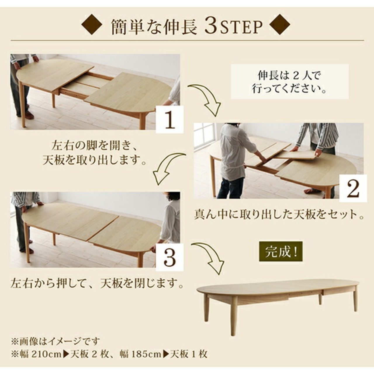 ※幅210cm 天板2枚、幅185cm 天板1枚