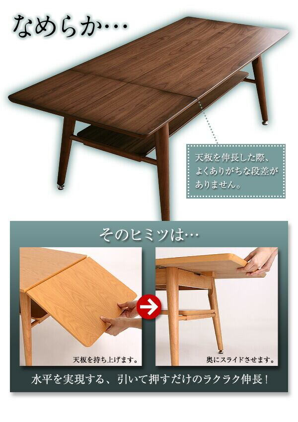 天板を伸長した際、よくありがちな段差がありません!そのヒミツは・・・