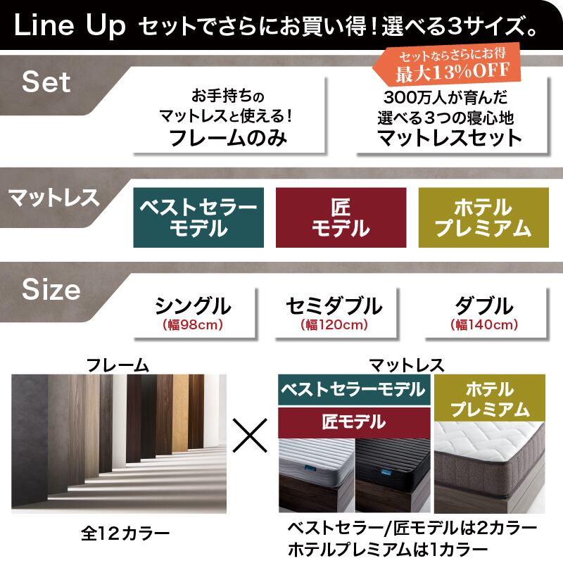 Line Up セットでさらにお買い得!選べる3サイズ。