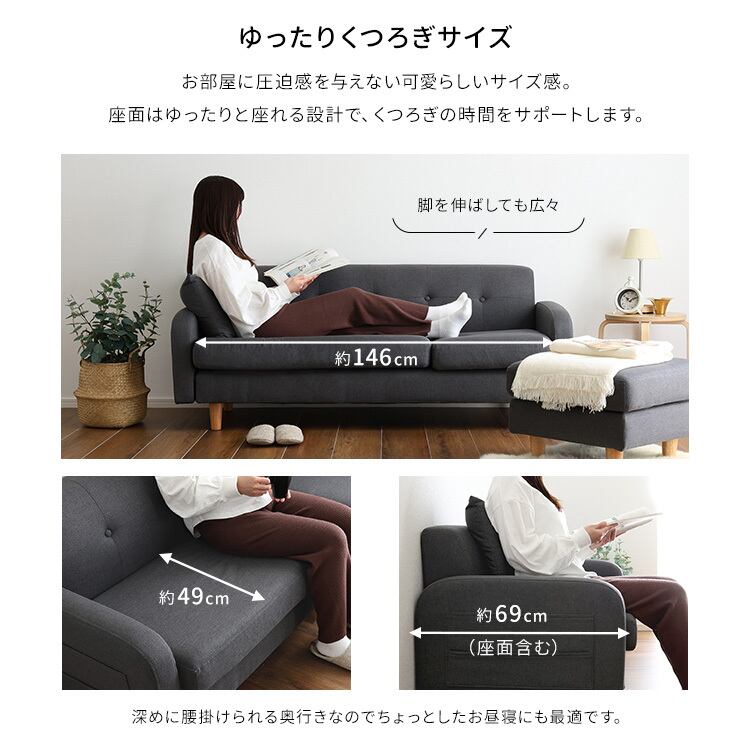 幅は163cmあるので、コンパクトながらもゆったりと脚を伸ばしてくつろいでいただけます。