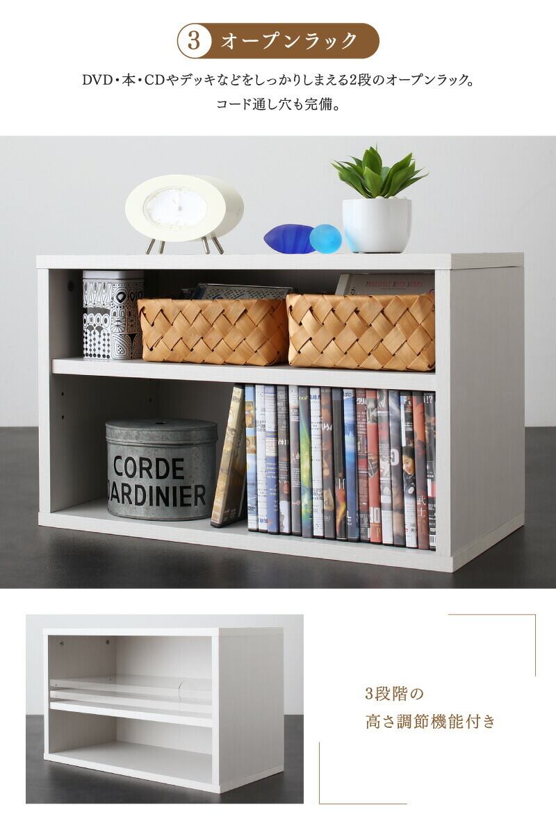 DVD・本・CDやデッキなどをしっかりしまえる2段のオープンラック。