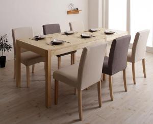 無段階に広がる スライド伸縮テーブル ダイニングセット Magie+ マージィプラス/7点:テーブル+チェア×6: シンプルタイプ