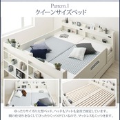 ヘッドボードもフットボードもたっぷり収納できる棚。
