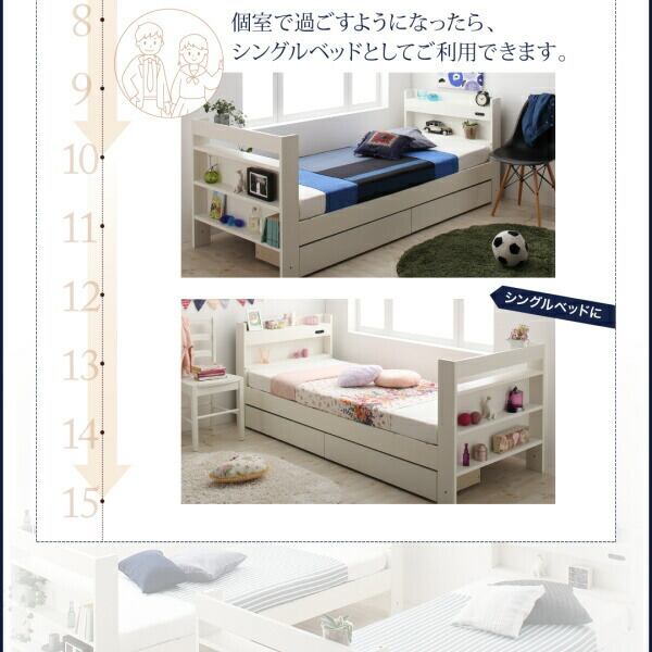 お子様が小さい頃から、成長しても、ずっと使えるベッド!