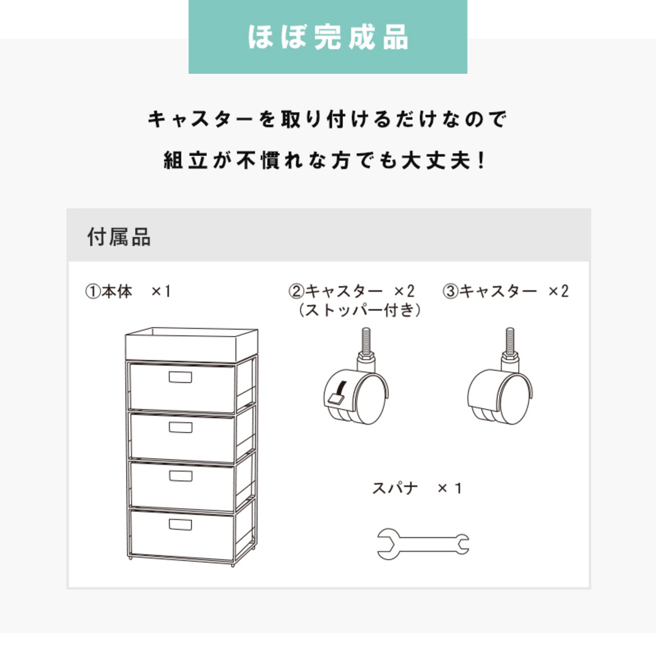 キャスターを取り付けるだけなので