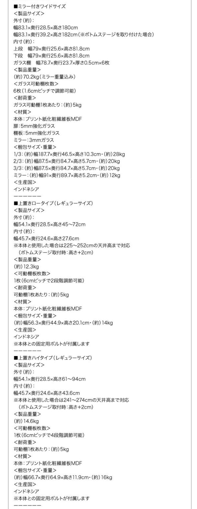 幅83.1 高さ241~274:上置きハイタイプ付き