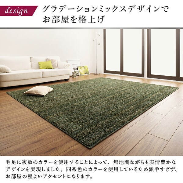 従来のナイロン糸が使われたラグと比べて、きめ細やかで、しっとりさらさらとした肌ざわり。