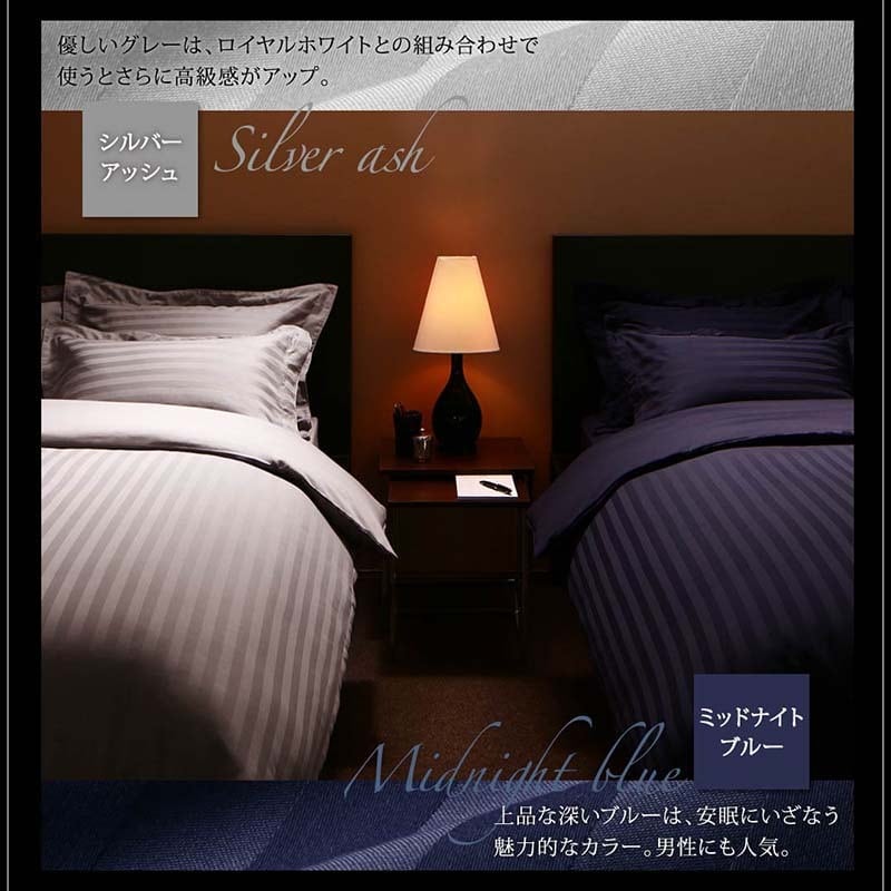 ★9色から選べる 綿混サテン ホテルスタイルストライプカバーリング