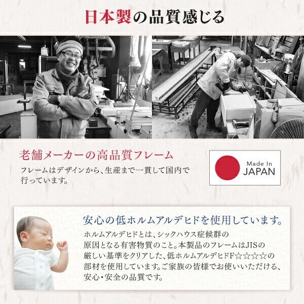 本製品のフレームはJISの厳しい基準をクリアした、低ホルムアルデヒドF☆☆☆☆
