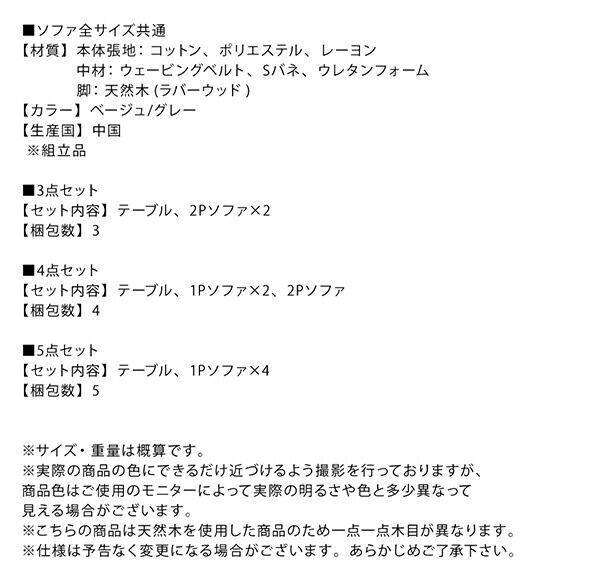 4点SET:テーブルW120/W150+2Pソファ+1P ×2