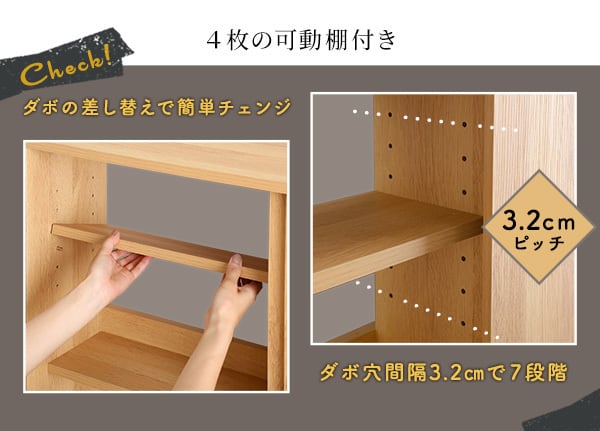 内部にはしっかりとした棚板が設けられており、収納物の整理整頓にも便利です。