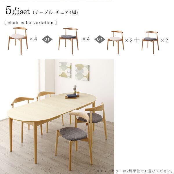 天然木アッシュ材 伸縮式オーバルダイニング Rangle ラングル:6点:テーブル+チェア×4+ベンチ