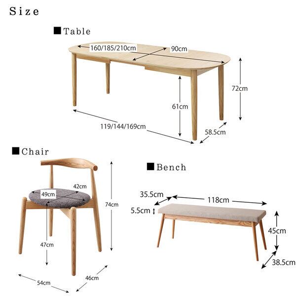 天然木アッシュ材 伸縮式オーバルダイニング Rangle ラングル:ベンチ