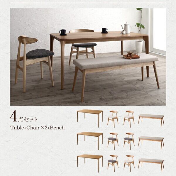 天然木オーク無垢材テーブル北欧モダンデザインダイニング GREAM グリーム:5点:テーブル+チェア×4