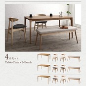 4点セット Tabel+Chair×2+Bench