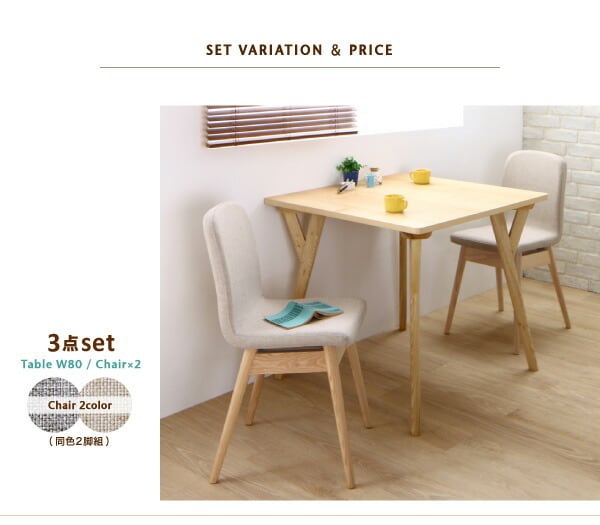 3点:テーブルW80+チェア×2