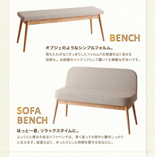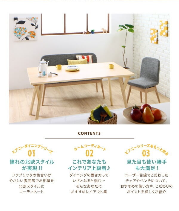 やさしい色合いの北欧スタイル ソファベンチ ダイニング Peony ピアニー:ダイニングテーブル サイズ: W140
