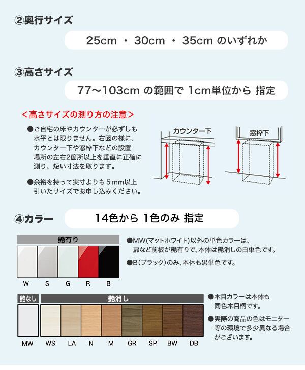 高さを77〜103cmまで1cm単位でサイズオーダー可能!