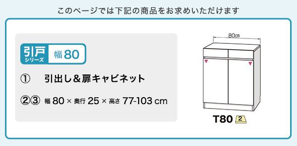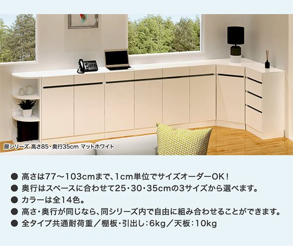 【扉シリーズ】セミオーダーカウンター下収納ぴったりくん キャビネット 幅80cm×奥行25cm