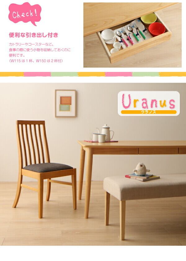 ファミリー向け タモ材 ハイバックチェア ダイニング Uranus ウラノス:4点:テーブル+チェア×2+ベンチ