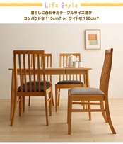 背もたれに背中を預けられるから、小さなお子様を抱っこしながら椅子に座る事が多いファミリーにぴったりのダイニングセットです。
