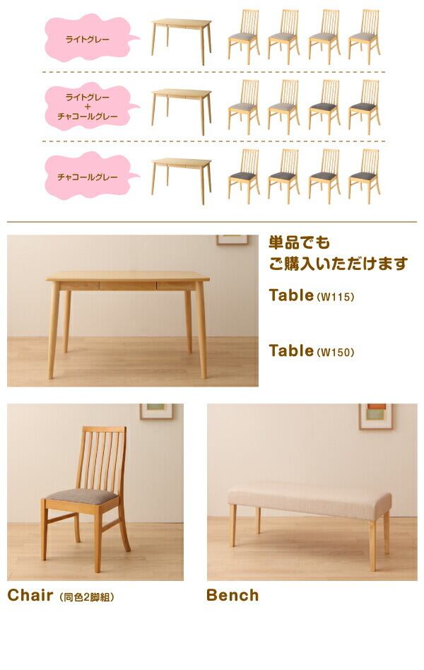 洗練された落ち着きを醸し出すチャコールグレー、シンプルで優しさを感じるライトグレー。