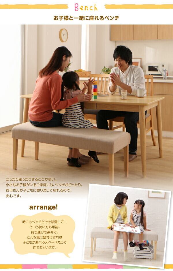 立ったり座ったりすることが多い、小さなお子様がいるご家庭には、ベンチがぴったり。お母さんが子どもに寄り添って座れるので、安心です。