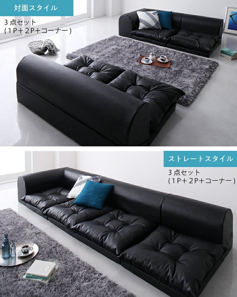 フロアコーナーソファ space スペース: ソファ3点セット: 2P×2+コーナー