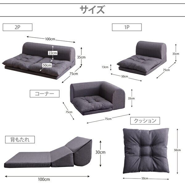 フロアコーナーソファ Populs ポプルス: ソファ単品 サイズ: 2P