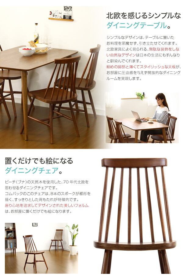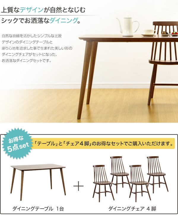 ダイニングセット【Egill-エギル-】5点セット(コムバックチェアタイプ)