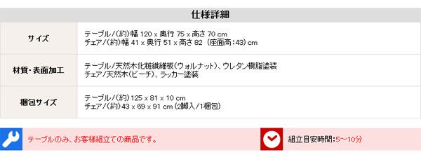 テーブル:天然木化粧繊維板(ウォールナット)、ウレタン樹脂塗装