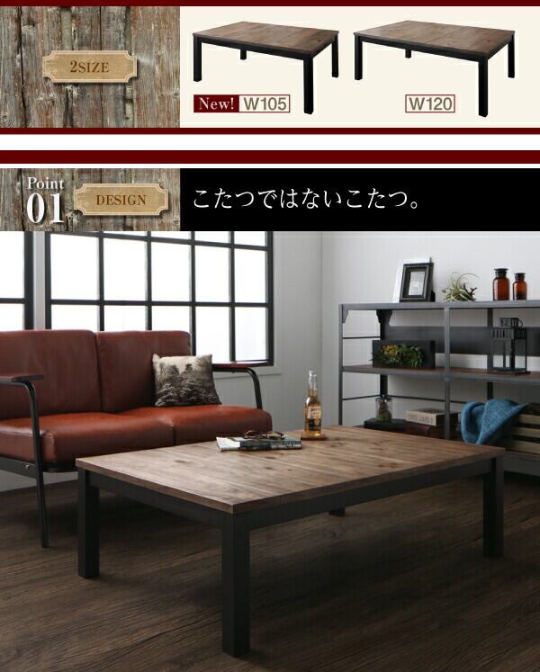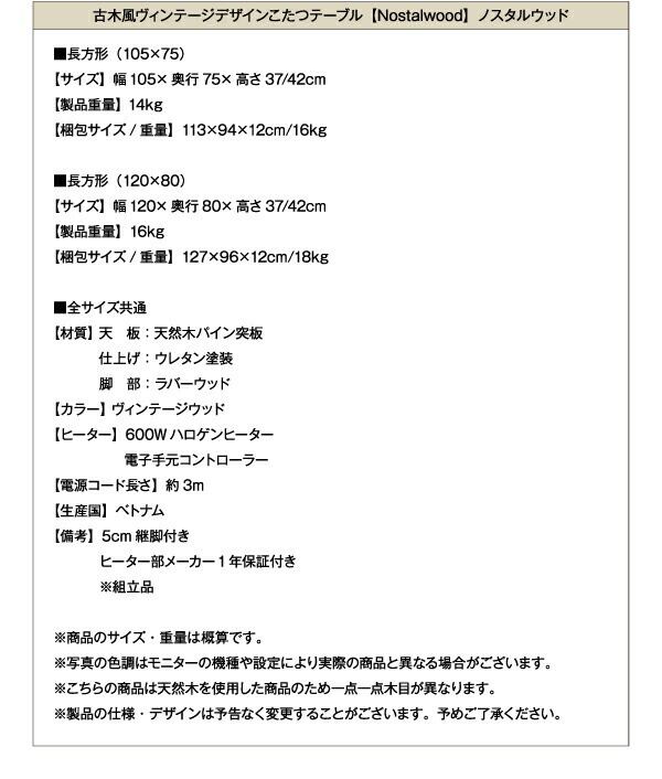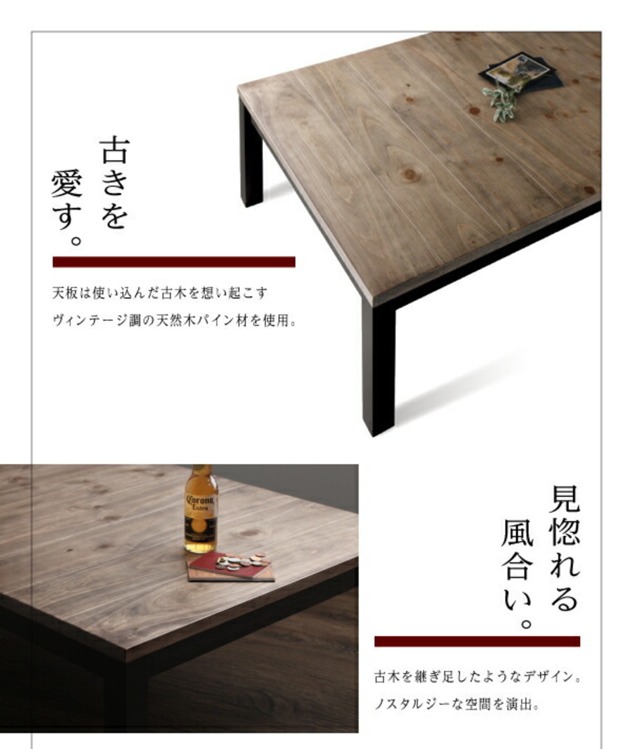 古木風ヴィンテージデザインこたつテーブル Nostalwood:4尺長方形(80×120cm)