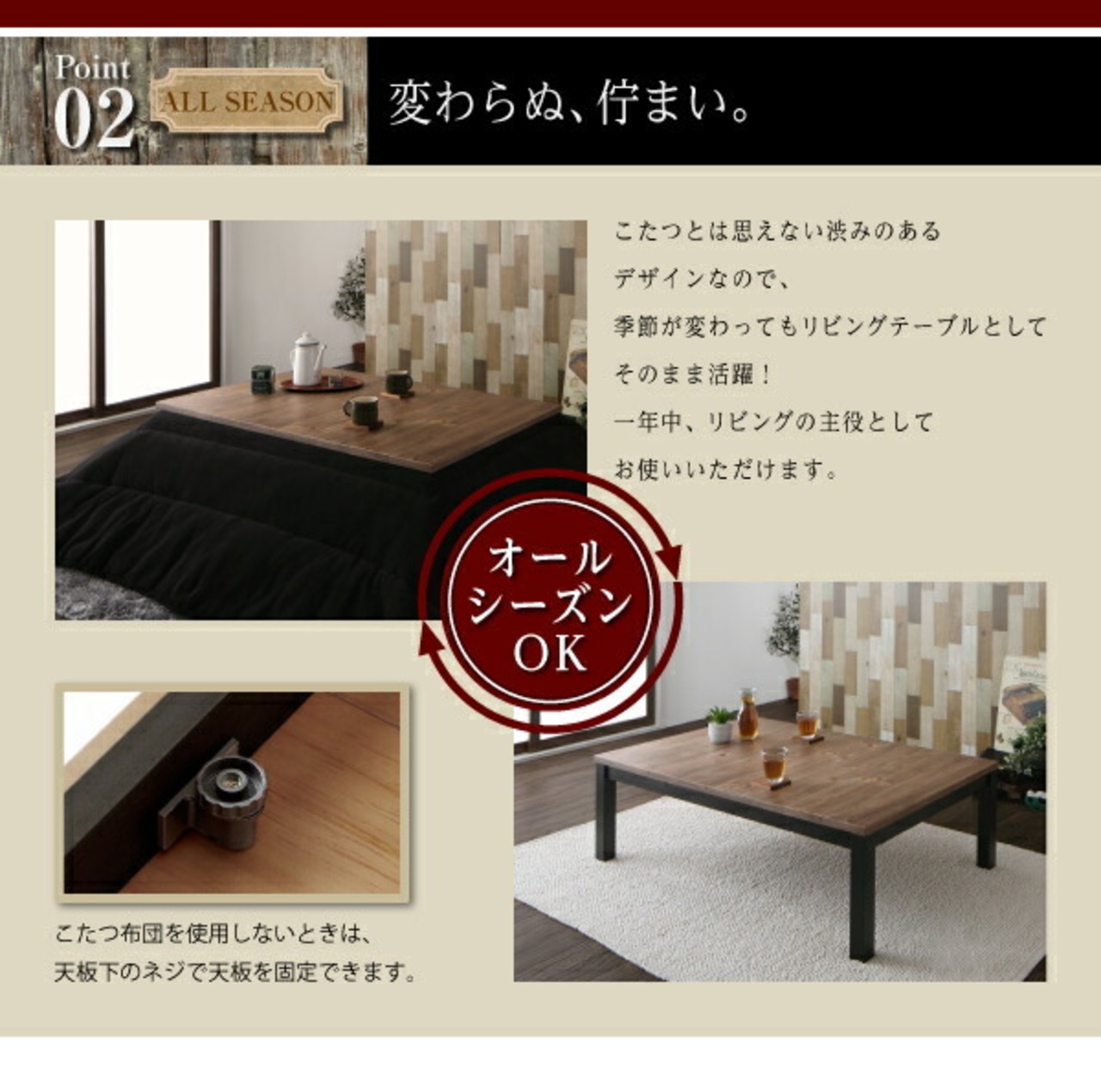 こたつとは思えない渋みのあるデザインなので、季節が変わってもリビングテーブルとしてそのまま活躍!