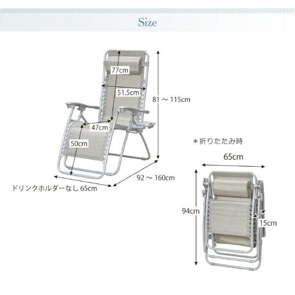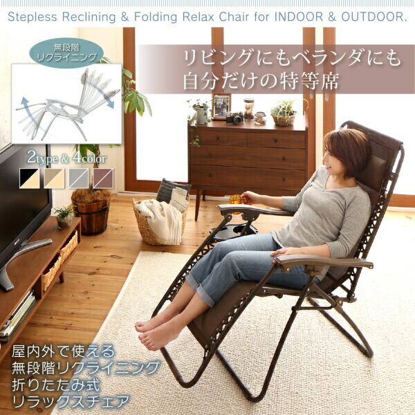 屋内外で使える 無段階リクライニング折りたたみ式リラックスチェア
