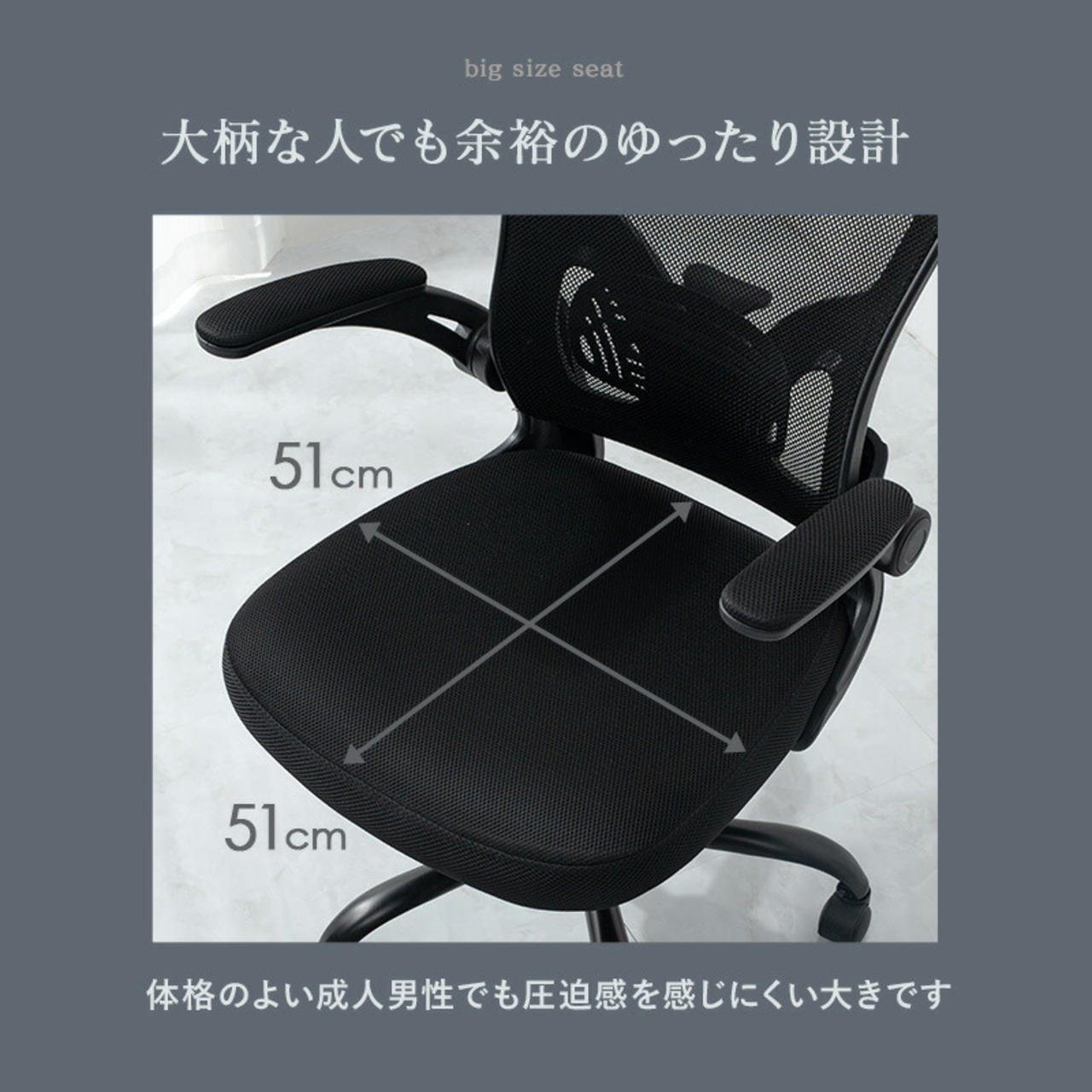 体格のよい成人男性でも圧迫感を感じにくい大きです