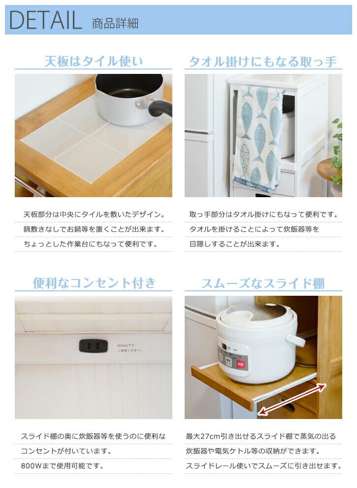 最大27cm引き出せるスライド棚で蒸気の出る炊飯器や電気ケトル等の収納ができます。