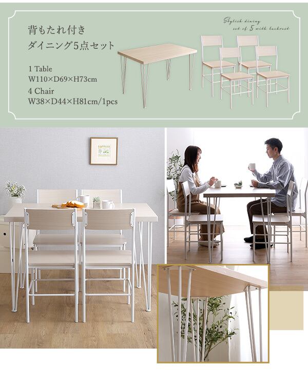 さわやかな背もたれ付きオシャレダイニング5点セット!
