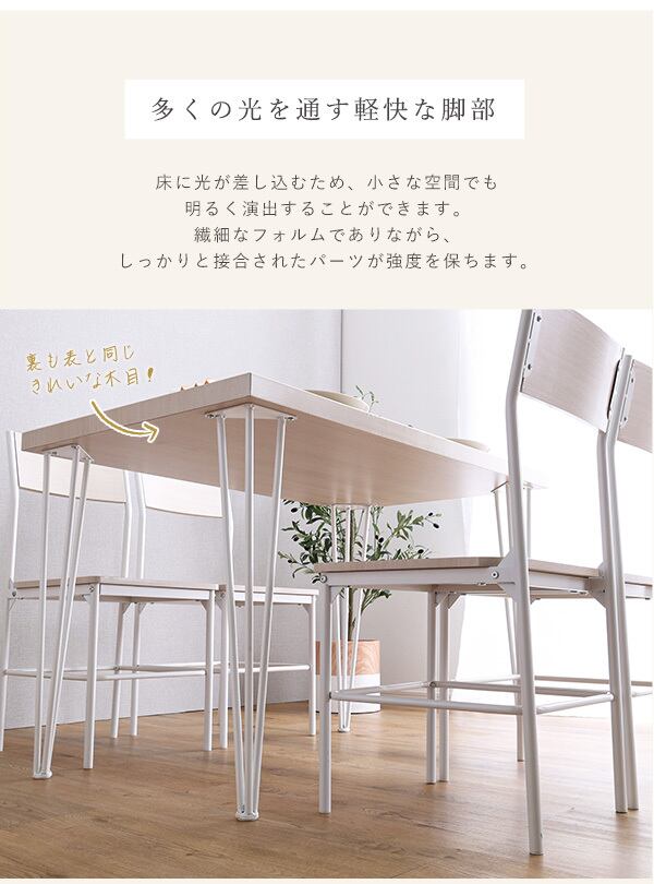 しっかりとした厚み4cmのある天板は高級感のあるホワイトオーク柄を側面、裏面にも施し食卓を明るく魅せます。