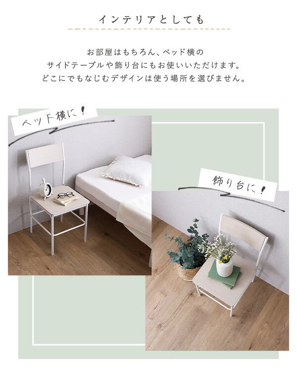 チェアはホワイトアイアン×木目の相性抜群でお部屋を明るく魅せます。