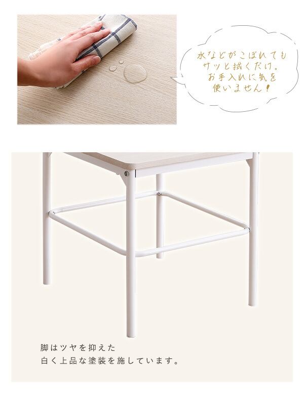 座面、背もたれは水や汚れに強いPVCを使用しておりますので、軽く拭くだけでお手入れ簡単です。