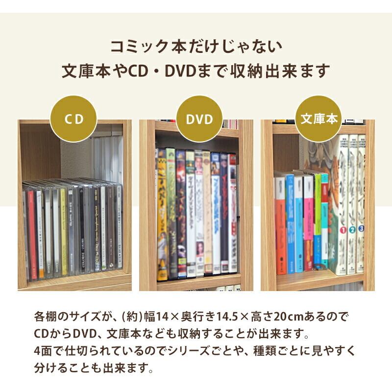 コミック本だけじゃない文庫本やCD・DVDまで収納出来ます
