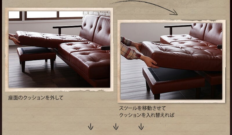 スツールとクッションを移動すれば、簡単にカウチスタイルや