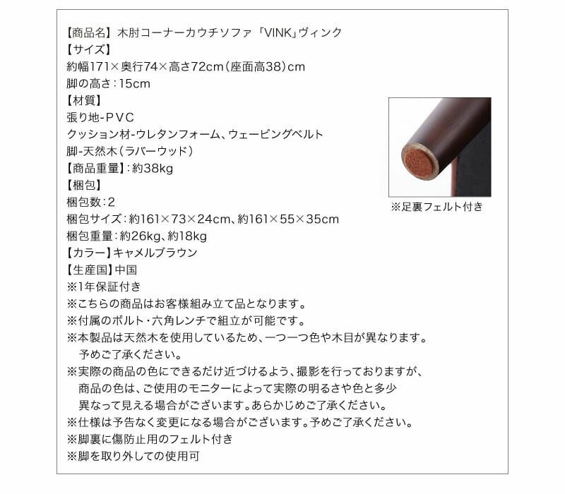 木肘コーナーカウチソファ【VINK】ヴィンク
