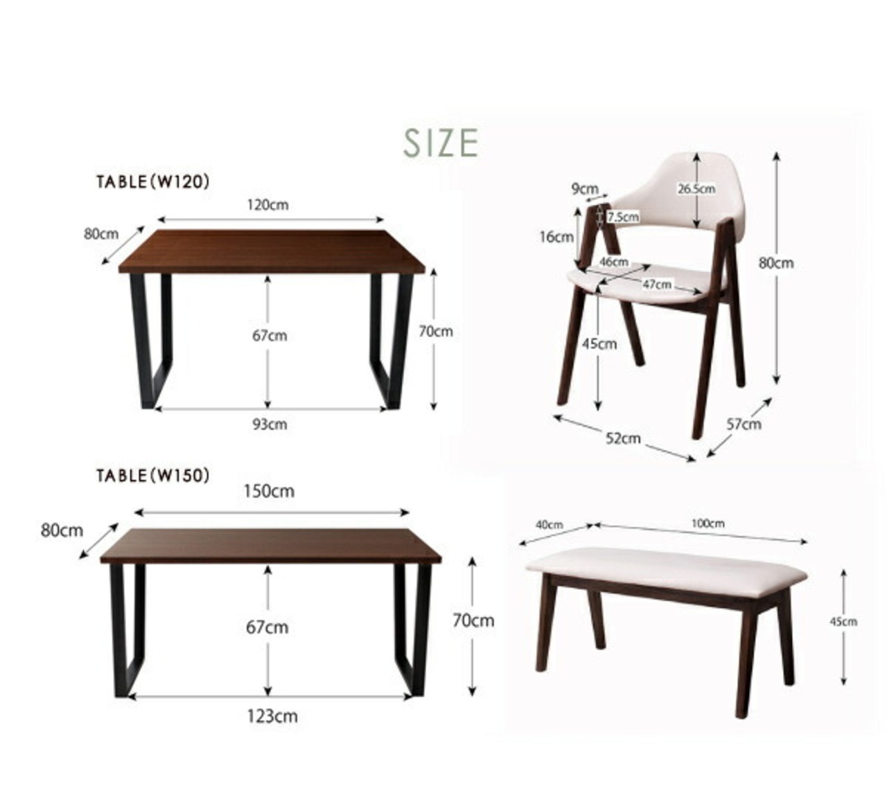 ※W120のセットに関しては、テーブル下にチェア・ベンチを収納できない 仕様となっております。